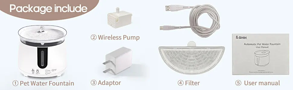 Multi-layer Filtration System:Our pet fountain with filter, purification column and sponge can effectively filter out the impurities, hair and dirt, remove odor and improve water quality. It can always provide your pet with fresher and cleaner water to to keep them away from sickness