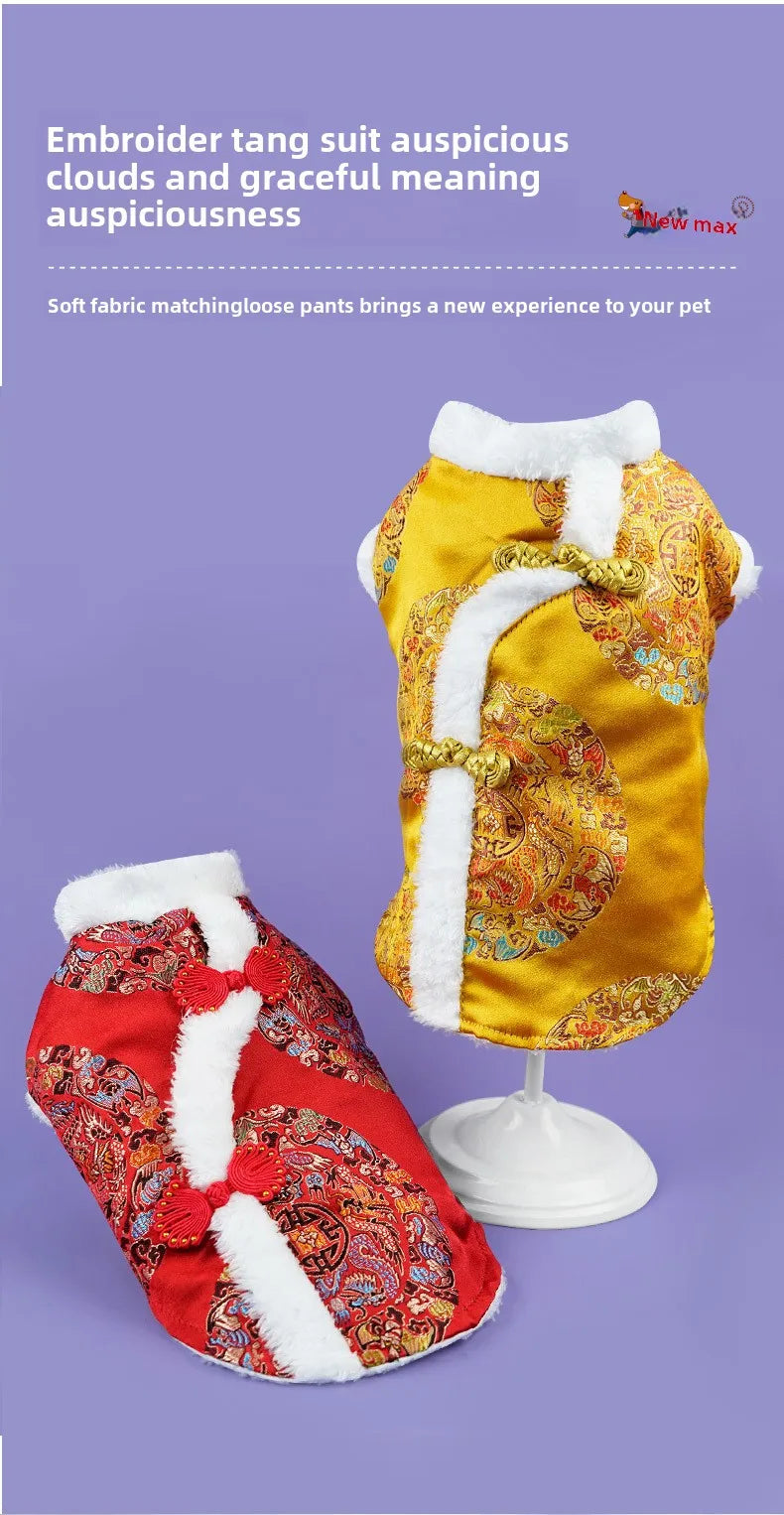 New Tang Style Big Dog Pet Clothes New Year Cotton Clothes Spring Festival Large Dog Thickened Clothes